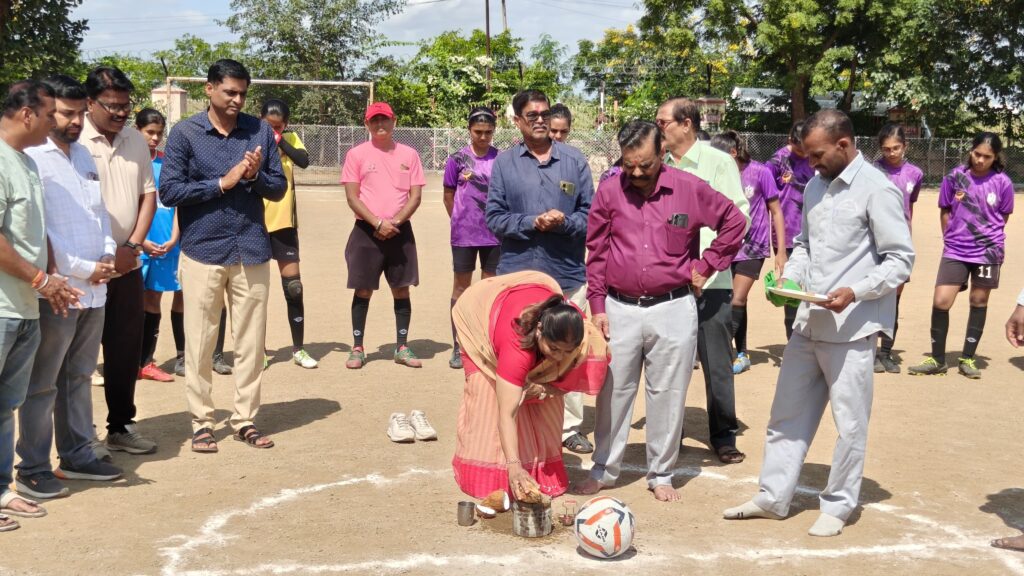 रॉयल फुटबॉल चॅम्पियनशिप २०२५ /२६ च्या फुटबॉल चषक स्पर्धेच्या उद्घाटन प्रसंगी शिवाजीराव घोरपडे,महादेवराव माने,तुषार नाईक निंबाळकर,सौ मीनल दिक्षित,संजय फडतरे,राहुल नाईक निंबाळकर व इतर मान्यवर