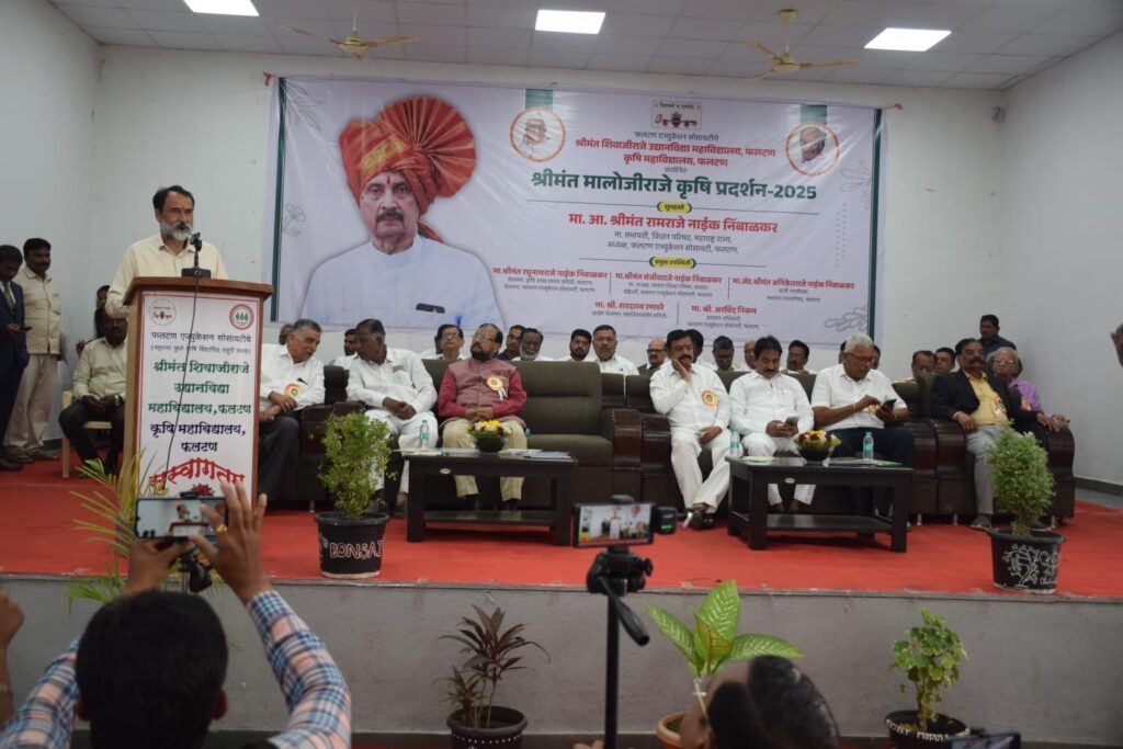 फलटण टुडे वृत्तसेवा ( फलटण दि २६ डिसेंबर २०२५):- महात्मा फुले कृषी विद्यापीठ, राहुरी मान्यताप्राप्त फलटण एज्युकेशन सोसायटी संचलित श्रीमंत शिवाजीराजे उद्यानविद्या महाविद्यालय व कृषी महाविद्यालय, फलटण आयोजित श्रीमंत मालोजीराजे कृषी प्रदर्शन 2025 उद्घाटन प्रसंगी प्रमुख अतिथी म्हणून फलटण एज्युकेशन सोसायटीचे सेक्रेटरी व माजी अध्यक्ष, जिल्हा परिषद, सातारचे मा. श्रीमंत संजीवराजे नाईक निंबाळकर यांनी उपस्थित शेतकऱ्यांना मार्गदर्शन करताना कै. श्रीमंत मालोजीराजे नाईक निंबाळकर यांनी शेतीशाळा सुरू केली, शेतकऱ्यांना नवनवीन तंत्रज्ञानाची माहिती व्हावी हा उद्देश डोळ्यासमोर ठेवला होता, काळानुसार बदल होत गेले शेतीमध्ये यांत्रिक शेतीला महत्त्व आले, पाण्याच्या अनिवार्य वापरामुळे शेतीचे उत्पादन घटू लागले याबाबत श्रीमंत शिवाजीराजे उद्यानविद्या महाविद्यालय व कृषी महाविद्यालय तत्सम संस्थांनी मार्गदर्शन केले तरी देखील भविष्यकाळातील कृत्रिम बुद्धिमत्ता बरोबरच सुधारित वाण, बियाणे व शेती अवजारे वापरावी लागतील व त्यानुसार आधुनिक शेती करावी लागेल असे प्रतिपादन उपस्थितांना केले. श्रीमंत मालोजीराजे कृषि प्रदर्शन 2025 उद्घाटन समारंभासाठी अध्यक्ष म्हणून , फलटण कोरेगाव विधानसभा मतदारसंघाचे माजी आमदार श्री. दिपकराव चव्हाण लाभले. श्रीमंत मालोजीराजे कृषि प्रदर्शनाचे उद्घाटन कार्यक्रमाचे प्रास्ताविक श्रीमंत शिवाजीराजे उद्यानविद्या महाविद्यालयाचे प्राचार्य डॉ. एस. डी. निंबाळकर यांनी कृषी प्रदर्शनाचे पार्श्वभूमी, कृषी प्रदर्शनासाठी सहभागी झालेल्या कृषी निवेष्ठांच्या कंपन्या व कृषी प्रदर्शनाचे महत्त्व याबद्दल उपस्थितांना प्रतिपादन केले. गोविंद फाउंडेशनच्या संचालिका श्रीमंत सौ. शिवांजलीराजे नाईक निंबाळकर वहिनीसाहेब यांना नेदरलँड सरकारडून फर्म इम्पॅक्ट अवार्ड सन्मानासाठी विशेष सत्कार मिळाल्याबद्दल गोविंद फाउंडेशनचे सौ. प्रतीक्षा खेतमाळीस यांनी सन्मान स्वीकारला. फलटण तालुक्यातील पिक लागवड, फळबाग लागवड, भाजीपाला लागवड, पशु संगोपन विविध क्षेत्रामधील प्रगतशील शेतकऱ्यांचा सन्मान प्रशस्तीपत्र व सन्मानचिन्ह देऊन गौरविण्यात आले. श्रीमंत मालोजीराजे कृषि प्रदर्शन उद्घाटन प्रसंगी अध्यक्षीय मनोगत व्यक्त करताना फलटण कोरेगाव विधानसभा मतदारसंघाचे माजी आमदार श्री. दिपकराव चव्हाण यांनी उपस्थितांना मार्गदर्शन करताना कृषि शिक्षण, शेती तंत्रज्ञान अनुभवा आधारित शेती तंत्रज्ञान, ऊस लागवड शेती, फळांचे गाव असलेले धुमाळवाडी, शेतीचे यांत्रिकीकरण तसेच अधिकतम शेतकऱ्यांनी कृषि प्रदर्शनाचा लाभ घ्यावा व प्रतिसाद द्यावा असे अनुमोदन उपस्थितांना केले. श्रीमं