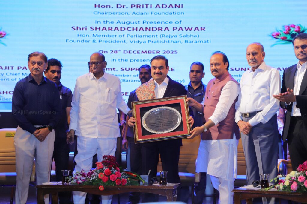 फलटण टुडे वृत्तसेवा ( बारामती दि २८ डिसेंबर २०२५):-विद्या प्रतिष्ठानच्या ‘शरदचंद्र पवार सेंटर ऑफ एक्सलन्स इन आर्टिफिशियल इंटेलिजन्स’ या अत्याधुनिक एआय सेंटरच्या उद्घाटनाचा कार्यक्रम अदानी उद्योगसमूहाचे अध्यक्ष श्री. गौतमजी अदानी यांच्या हस्ते तसंच ज्येष्ठ नेते, आदरणीय श्री. शरद पवार साहेब यांच्या अध्यक्षतेखाली आज आनंदात पार पडला.