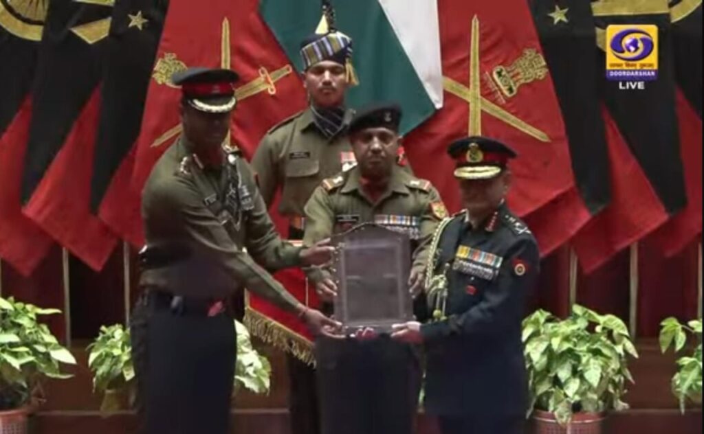 युनिट प्रशस्तिपत्र पुरस्कार २०२६’ ने लष्करप्रमुखांच्या हस्ते कर्नल सुजय तांबे सन्मान स्वीकारताना यावेळी उपस्थित इतर मान्यवर