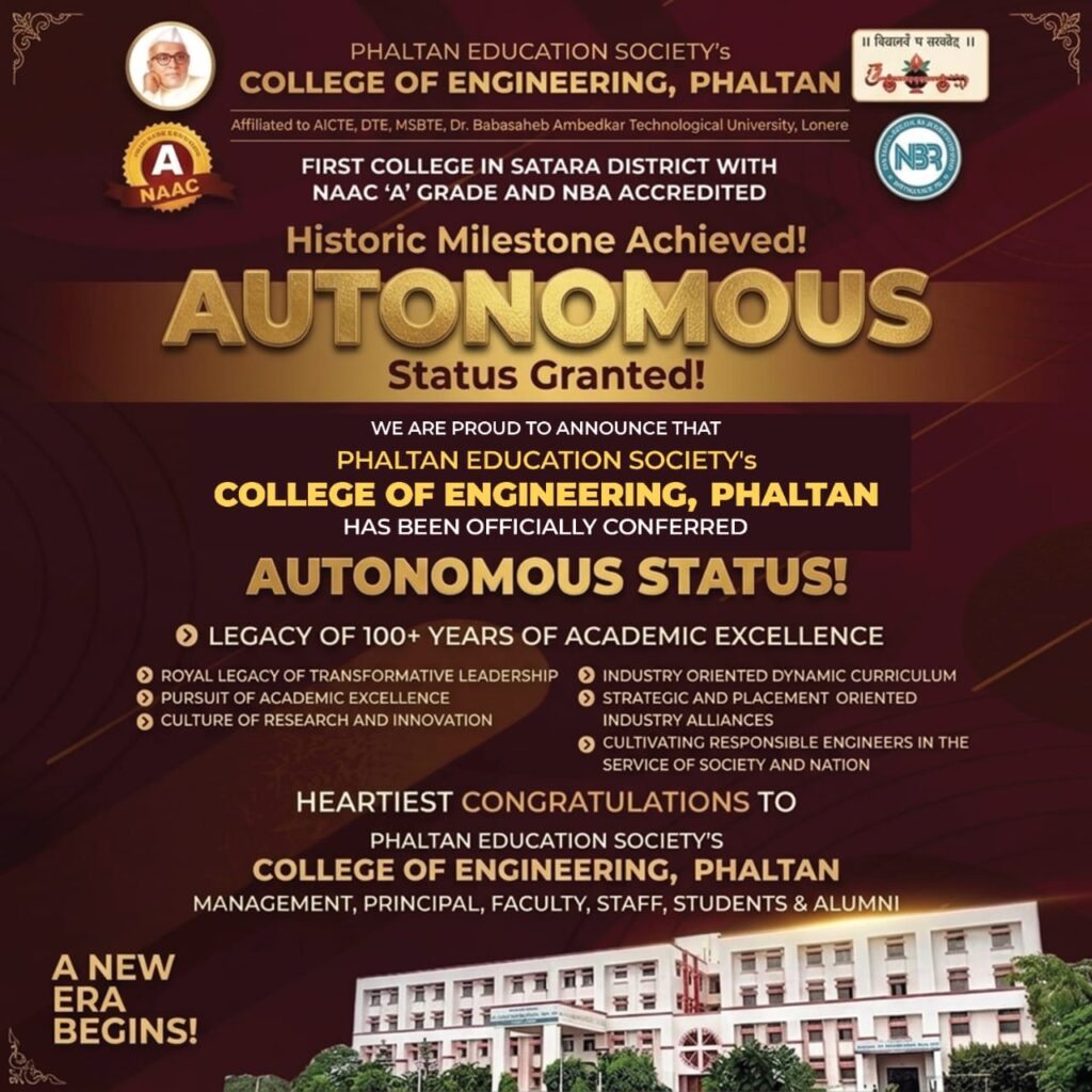फलटण इंजिनिअरिंग कॉलेजला स्वायत्ततेचा दर्जा