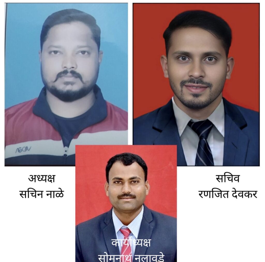 जिल्हा अध्यक्ष म्हणून श्री. सचिन नाळे यांची एकमताने निवड करण्यात आली आहे. जिल्हा उपाध्यक्ष पदी श्री. राकेश यादव, श्री. सुदर्शन माने , श्री. महादेव टकले. कार्याध्यक्ष पदी श्री. सोमनाथ नलवडे, सचिवपदी. श्री रणजीत देवकर,सहसचिव पदी श्री.ऋषिकेश खोमणे,श्री. अमित गावडे, श्री.अभिजीत साळुंके,खजिनदार पदी श्री. सोमनाथ कोठावळे, सह खजिनदार पदी श्री. नवनाथ गायकवाड, श्री गणेश गव्हाणे, सौ. तेजश्री शिंदे. जिल्हा संघटकपदी श्री. मंदार कळसकर श्री. मोहन कचरे श्री. अतुल जगताप श्री. साहिल बागवान श्री .अमित परब, श्री. सुरज माने,श्री. हर्षल मुळे,श्री. सचिन काशीद ,श्री. सागर पवार,श्री. लक्ष्मण गावडे, सौ. मोनाली काळे,सौ. साधना खोमणे, सौ. संगीता ढगे, सौ.ज्योती उदावंत, यांची निवड झाली आहे.